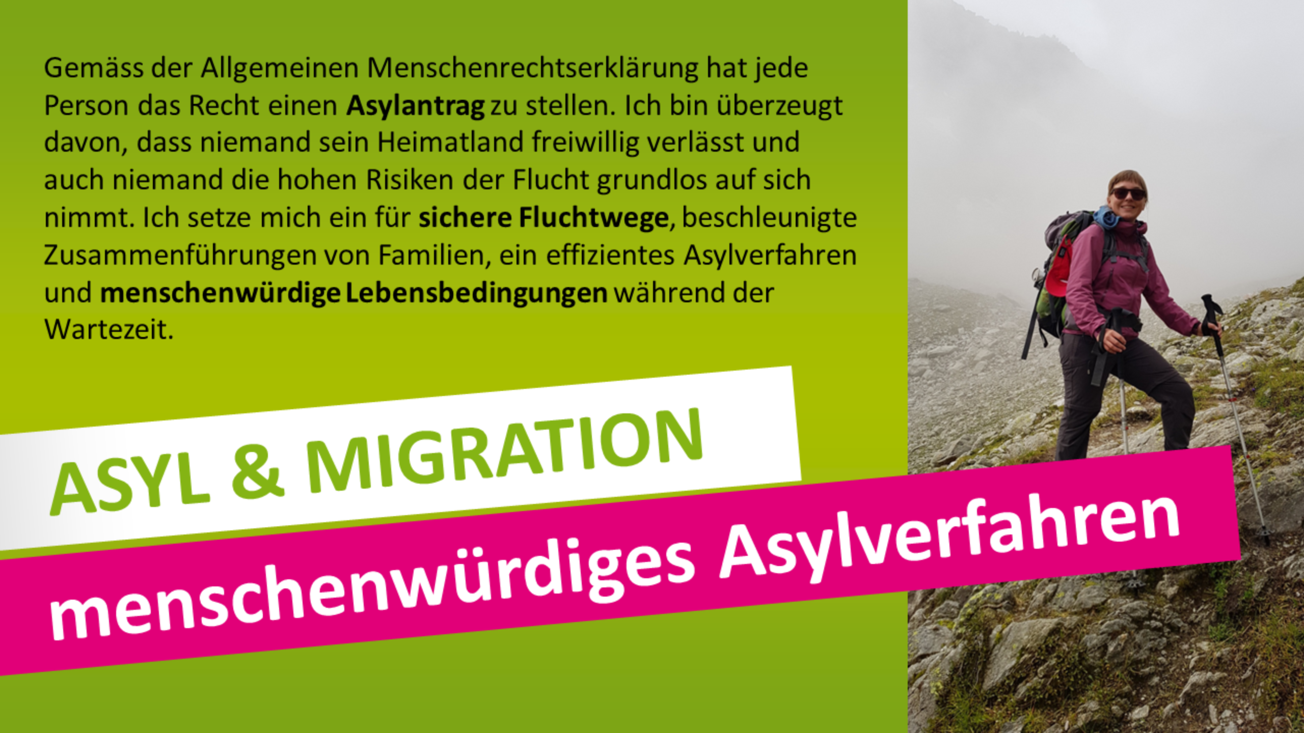 Startseite meine Politik meine Gesellschaftspolitik meine Gesellschaftspolitik Ich setze mich ein für die Chancengerechtigkeit. Ich stehe für die Gleichberechtigung der Geschlechter (inkl. Förderung von Tagesschulen & Kitaplätzen) und ein menschenwürdiges Asylwesen.