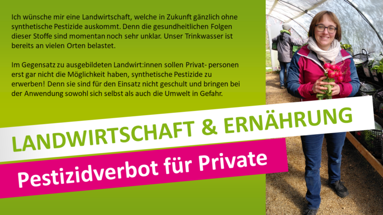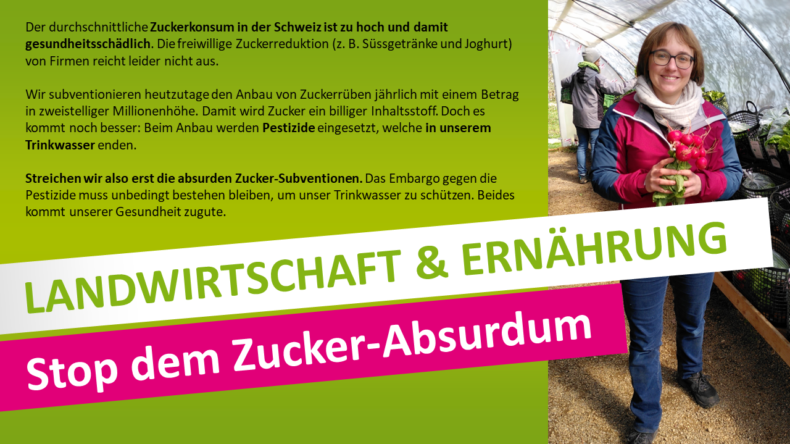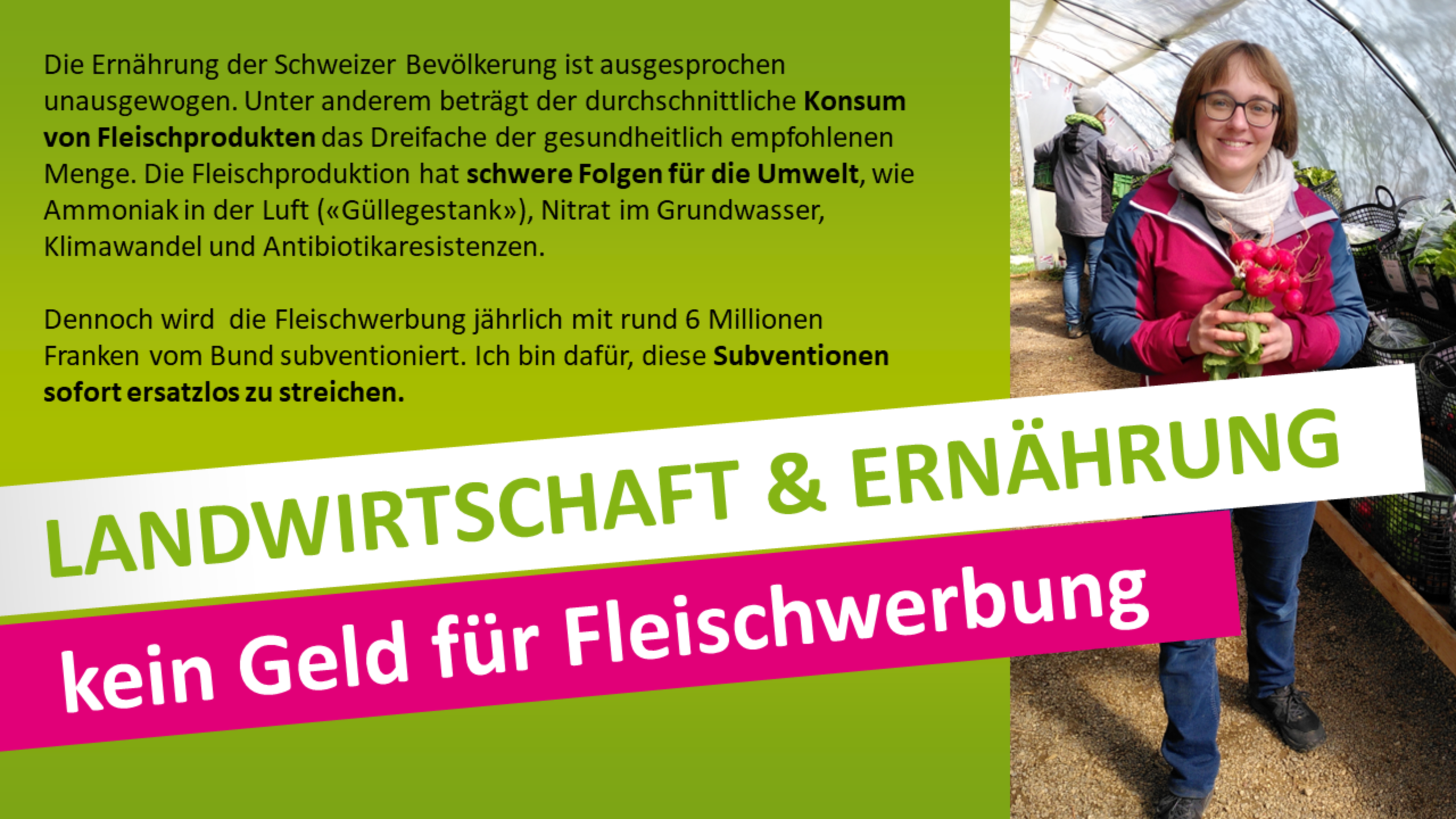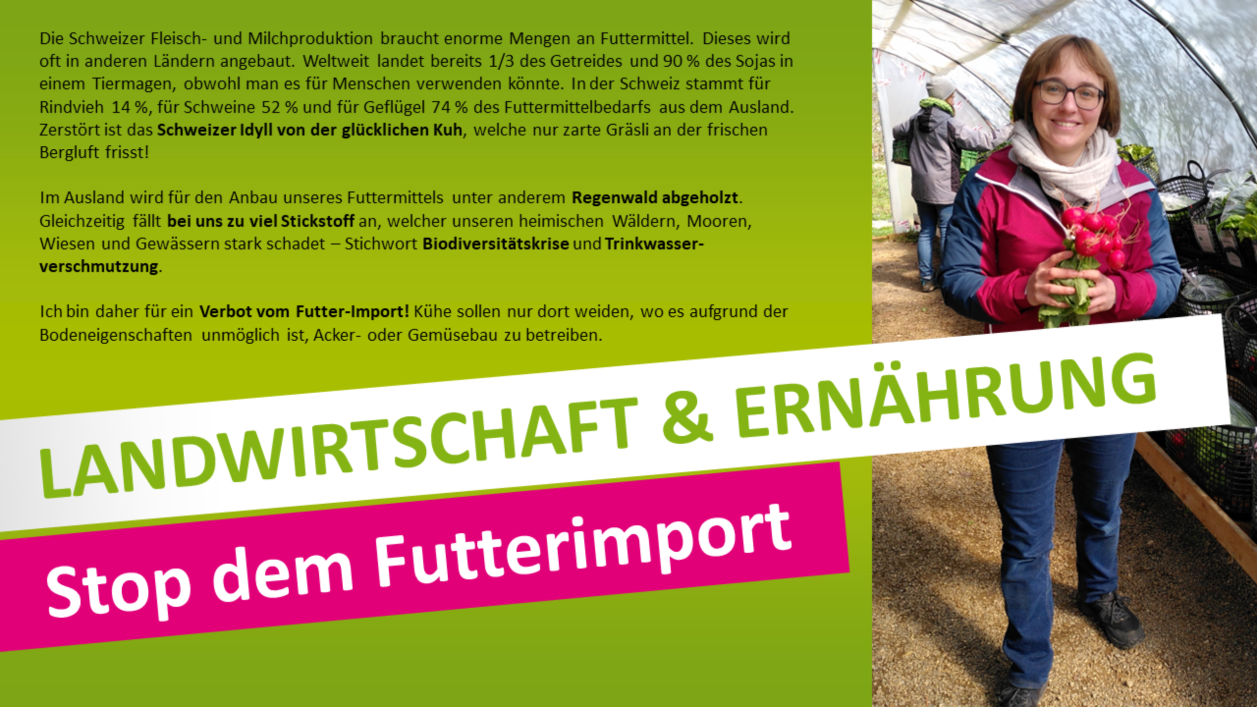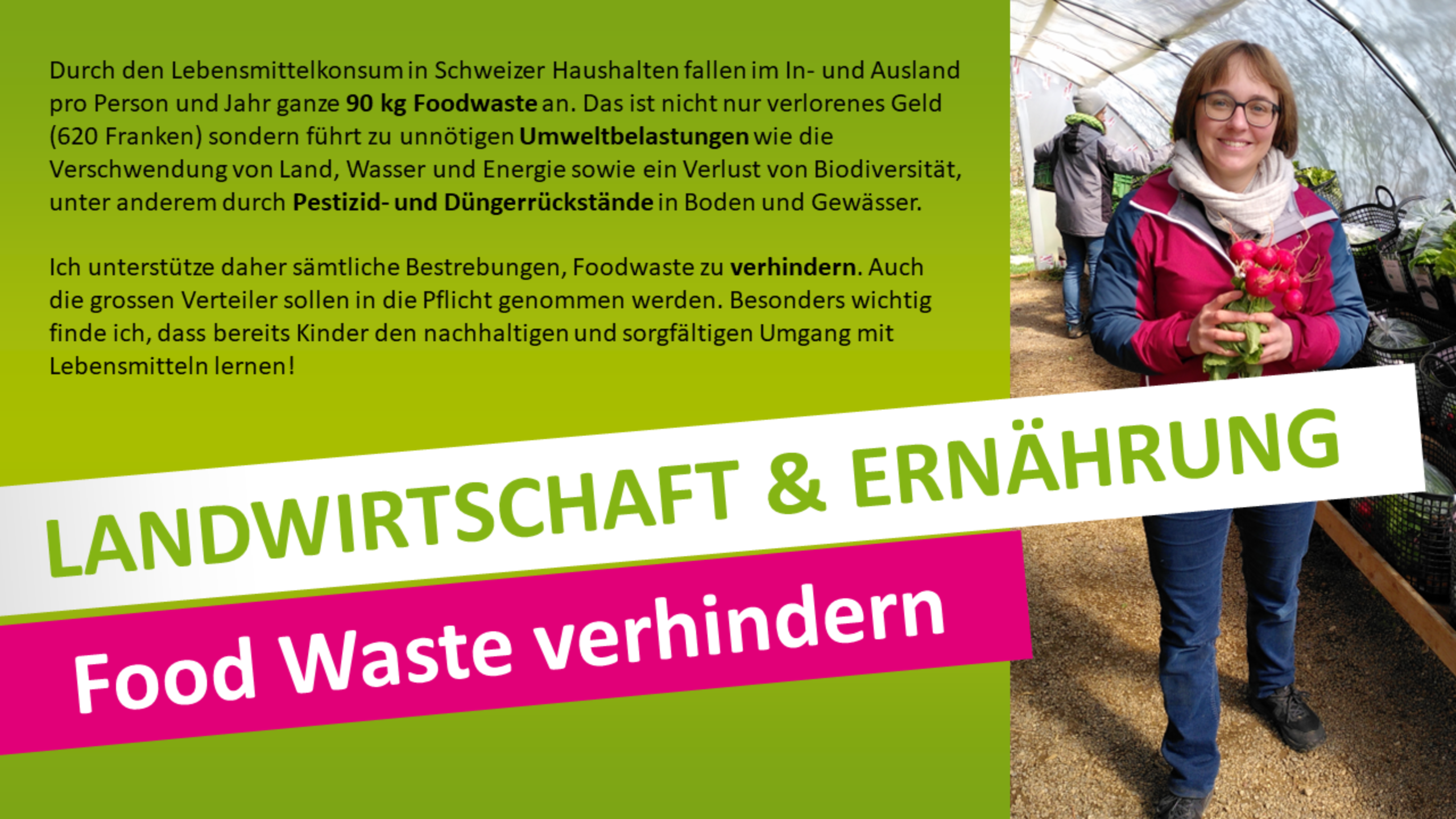 Während meiner Dissertation zu Düngerauswaschung ins Trinkwasser habe ich mich ausführlich mit den beiden Themen „Landwirtschaft“ und „Ernährung“ beschäftigt. Die Arbeit der Bäuerinnen und Bauern, mit welchen ich zusammengearbeitet habe, hat mich sehr beeindruckt. Ausserdem unterstütze ich kleinbäuerliche Strukturen und die solidarische Landwirtschaft mit einem wöchentlichen, saisonalen Gemüsekistli. Selbst beziehe ich mein Bio-Gemüse vom wunderschönen Gartenberg in Wölflinswil.