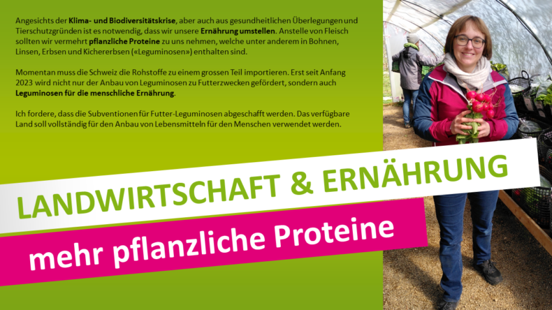 Um den Selbstversorgungsgrad hoch zu halten und unser Essen nachhaltig und umweltfreundlich zu produzieren, müssen wir so schnell wie möglich tierische Proteine in unserer Ernährung durch pflanzliche ersetzen.